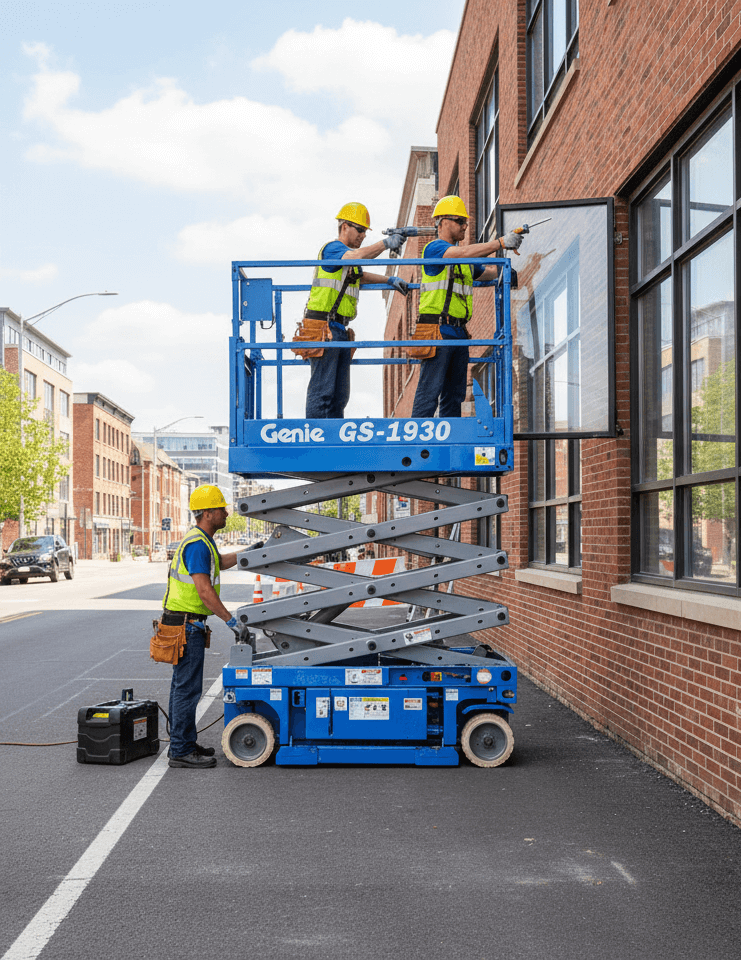 The Genie GS-1930 is a compact, battery-powered scissor lift designed for safe and efficient elevated work. With a working height of up to 25 ft, this lift is perfect for indoor maintenance, construction finishing, electrical installation, or warehouse access. Its narrow design allows it to easily pass through standard doorways and navigate tight spaces.